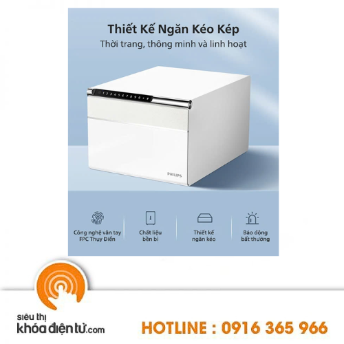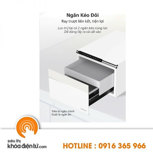 Két sắt mini Philips SBX102 được trang bị thiết kế ngăn kéo kép độc đáo. Hai ngăn lưu trữ riêng biệt giúp người dùng phân loại và sắp xếp các vật dụng cá nhân theo nhu cầu, từ giấy tờ quan trọng đến các tài sản có giá trị. Ngăn kéo chính dễ dàng mở ra bằng vân tay hoặc mã số, trong khi ngăn kéo phụ được ẩn kín đáo để tăng cường tính bảo mật cho những vật dụng cần riêng tư.