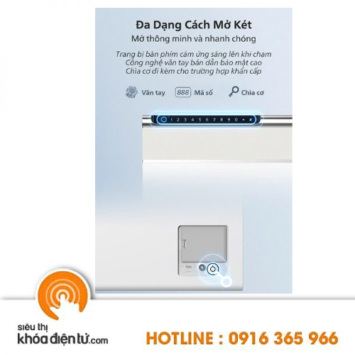 Phương thức mở: Vân tay, Mã số, Chìa cơ