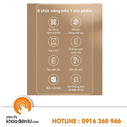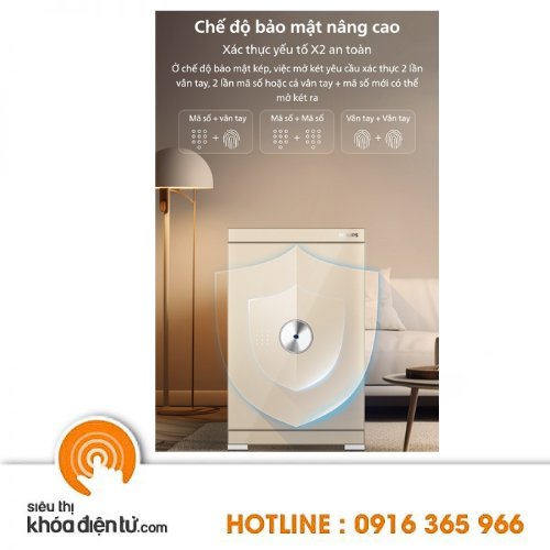 Tính năng mã số thân thiện, bề mặt mã số ẩn tinh tế ngay trên cánh cửa két. Ứng dụng công nghệ vân tay FPC Thụy Điển với độ bảo mật ở mức tuyệt đối. Công nghệ FPC có khả năng nhận dạng vân tay qua ba cảm biến: nhiệt độ, điện dung và áp suất. Két có tay nắm âm, chỉ phóng ra khi nhập đúng mật khẩu.