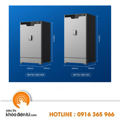 Philips SBX702 là dòng sản phẩm két sắt cao cấp mới của Philips có kích thước cùng với hạng cân lớn nhất và đa dạng các kích thước khác nhau. Két sắt Philips SBX702 đa dạng các hạng cân: 196 kg, 234 kg với các kích thước đi kèm từ 1m – 1m2.