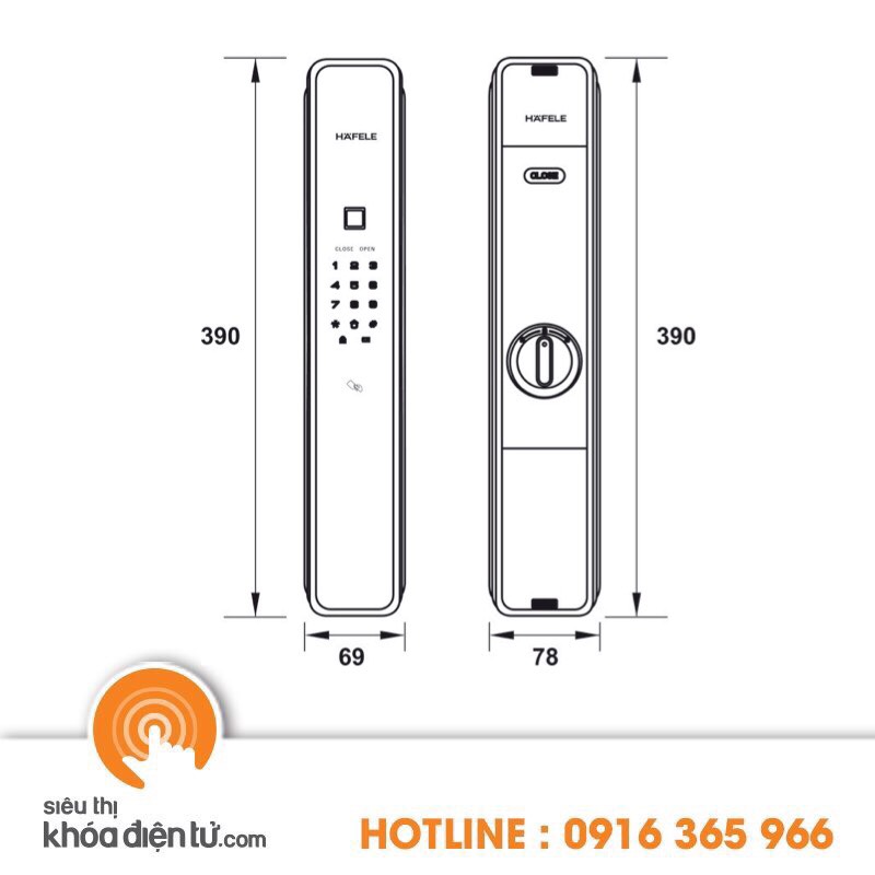 | Ưu điểm | Tích hợp chế độ vắng nhà để tăng cường an ninh cho căn nhà Có thể thay đổi linh hoạt giữa 2 chế độ khóa tự động và thủ công Quản lý bằng mật khẩu chủ và mật khẩu người dùng Häfele Smart Lock APP: Mở khóa trên APP điện thoại qua sóng Bluetooth; Cài đặt khóa dễ dàng hơn; Kiểm tra lịch sử Chức năng xác thực kép bằng cách kết hợp 2 trong 3 cách đăng nhập (vân tay/mã số/thẻ từ) Tích hợp chế độ riêng tư, được kích hoạt từ mặt trong khóa Chức năng chống sao chép mật khẩu bằng cách sử dụng kèm mật mã ảo Hướng dẫn cài đặt bằng giọng nói (Tiếng Anh/Trung Quốc) Có thể tích hợp với hệ thống nhà thông minh sử dụng sóng Z-wave Tích hợp âm thanh cảnh báo Pin yếu |