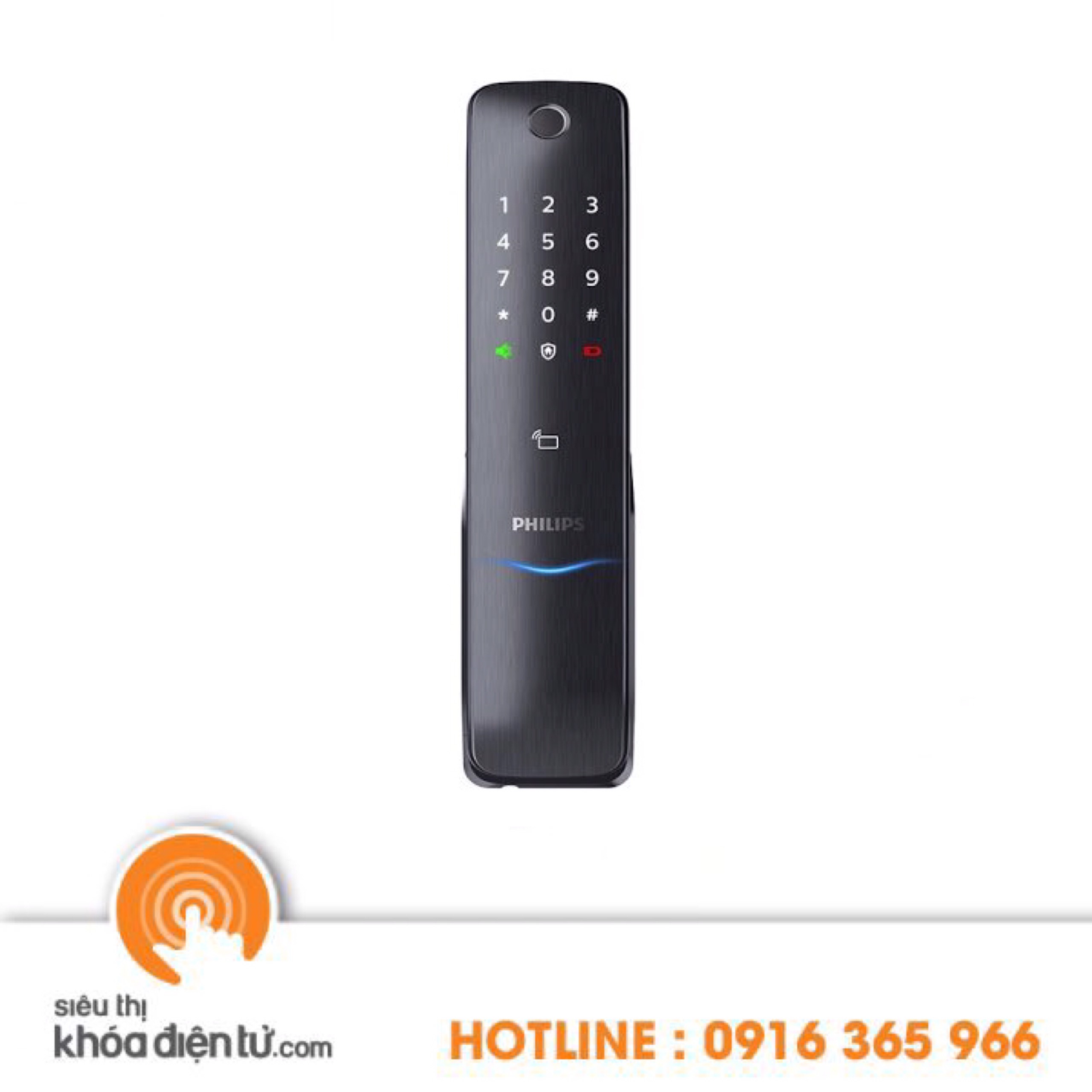| Ưu điểm | Thiết kế kéo đẩy hiện đại, sang trọng và đẳng cấp Công nghệ vân tay FPC Thụy Điển thời gian mởi khóa chưa tới 0.5 giây Vân tay đặt ngay trên tay cầm có thể mở khóa chỉ với 1 chạm Bề mặt phủ IML chống bám bụi và không lưu lại dấu vân tay Đèn thông báo thiết kế độc quyền của Philips Tay nắm cửa đảo chiều dễ dàng, thuận tiện khi lắp đặt Có chốt an toàn độc lập Chức năng hướng dẫn bằng giọng nói |
