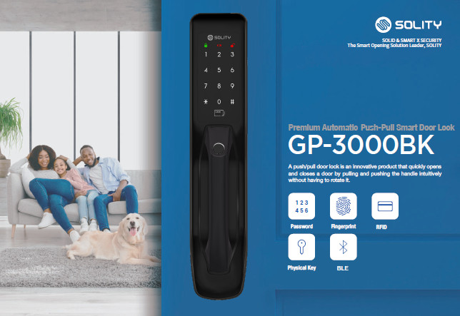 Khóa cửa vân tay Solity GP-3000BK là sản phẩm khóa kéo dạng pull push có cải tiến giúp mở nhanh và đóng cửa bằng cách kéo và câm tay cầm một cách trực tiếp.