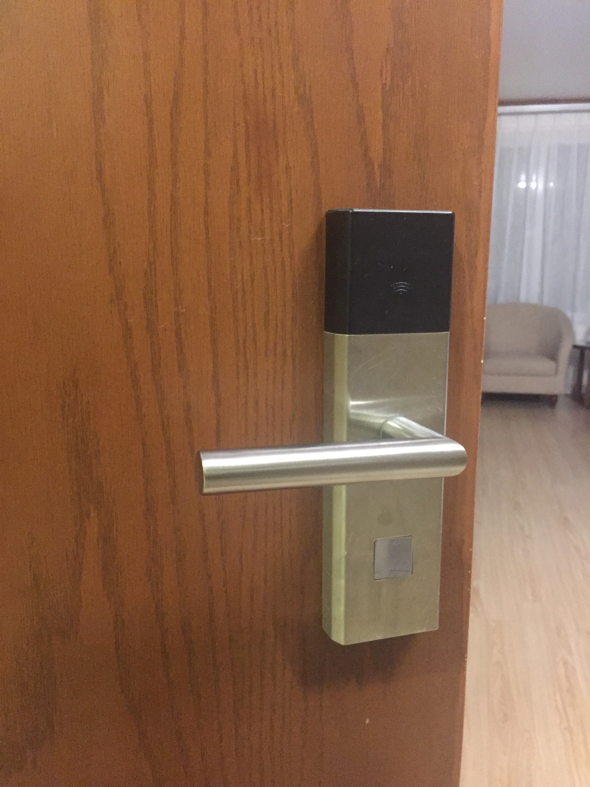 | Ưu điểm | Khoá cảm ứng ADEL sử dụng công nghệ sóng vô tuyến với tần số được mã hóa bằng thuật toán ngẫu nhiên theo công nghệ của Tập đoàn ADEL, tránh việc dò sóng mở khóa nên tính năng bảo mật và độ an toàn rất cao. Đầu đọc thẻ cảm ứng được tích hợp bên trong khóa, đọc thẻ mở cửa từ khoảng cách 1cm - 3cm không cần tiếp xúc thẻ lên bề mặt khóa. Khóa cảm ứng ADEL là hệ thống khóa thông minh tích hợp hệ thống điều khiển bằng vi mạch bên trong khóa, đáp ứng nhu cầu khác nhau tùy theo mục đích sử dụng hệ thống khóa. Bề mặt: Phủ PVD chống trầy xước, cho bề mặt luôn sáng bóng. Cài đặt thời gian cho hệ thống khóa bảo đảm thẻ chìa khóa không thể mở cửa: Khu vực hạn chế ra vào, sau giờ làm việc, ngày nghỉ...(phân quyền ra vào). Báo động với tiếng bíp kéo dài cảnh báo khi có người nạy phá khóa hoặc cửa chưa được đóng hoàn toàn khi ra khỏi phòng. Báo hiệu bằng âm thanh và đèn đỏ nháy khi pin yếu |
