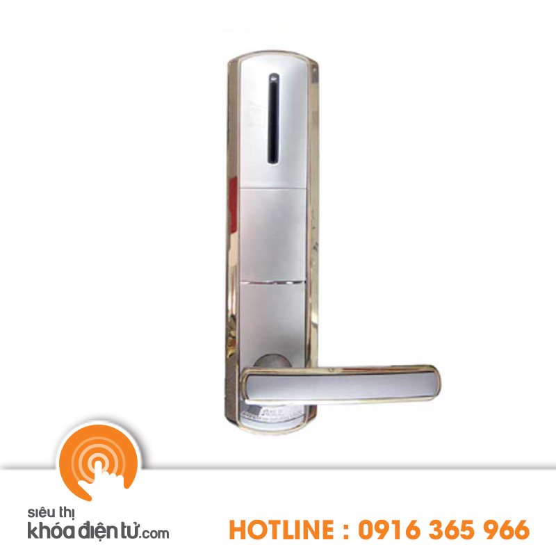 | Ưu điểm | Khóa cửa sử dụng công nghệ thẻ từ Bề mặt: Phủ PVD chống trầy xước, cho bề mặt luôn sáng bóng. Cài đặt thời gian cho hệ thống khóa bảo đảm thẻ chìa khóa không thể mở cửa: Khu vực hạn chế ra vào, sau giờ làm việc, ngày nghỉ...(phân quyền ra vào). Báo động với tiếng bíp kéo dài cảnh báo khi có người nạy phá khóa hoặc cửa chưa được đóng hoàn toàn khi ra khỏi phòng. Báo hiệu bằng âm thanh và đèn đỏ nháy khi pin yếu Bộ cơ chuyển động ly hợp bằng bánh răng tạo nên sự chắc chắn, đều đặn. Chức năng khóa đôi: khóa cửa bằng 5 chốt, độ an toàn cao |